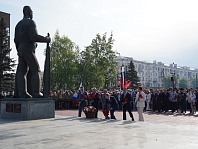 Сегодня, 9 мая, праздничные мероприятия традиционно начались с церемонии возложения цветов к скульптурной группе «Прощание», монументу с фамилиями Героев Советского Союза и полных кавалеров ордена Славы, Вечному огню.
