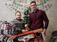 Захар Торычев поздравил десятилетнего Романа, исполнив его желание получить электрический пулемёт-бластер.