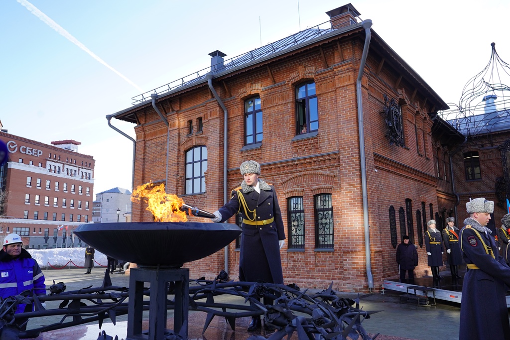Кульминацией мероприятия стало зажжение Вечного огня у входа в музей. Это третий подобный мемориал в Барнауле, где пламя будет гореть круглосуточно. Память павших героев почтили оружейным залпом и возложением цветов.